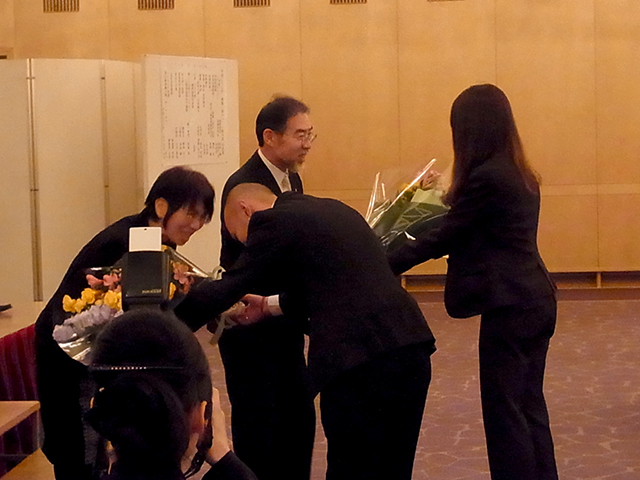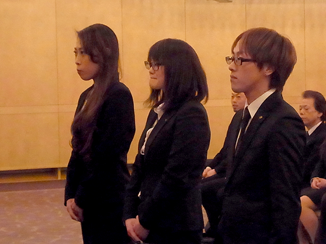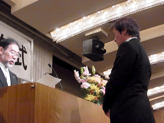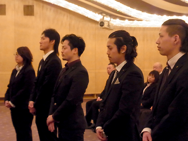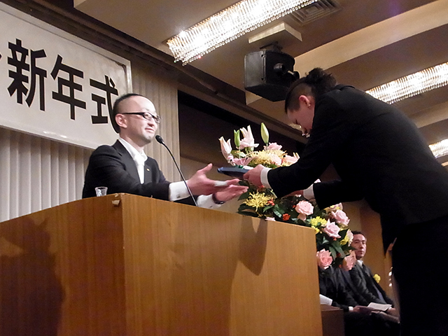 昨年度の優秀従業員の表彰。スピーチコンクールの結果発表。